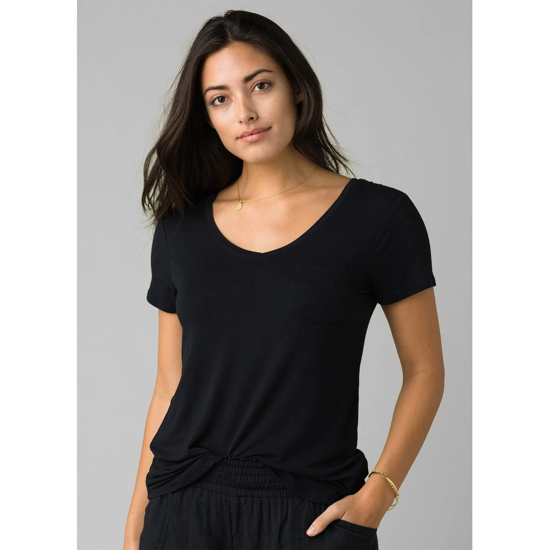 - V-neck pocket tee with back seam details